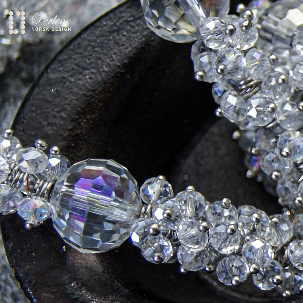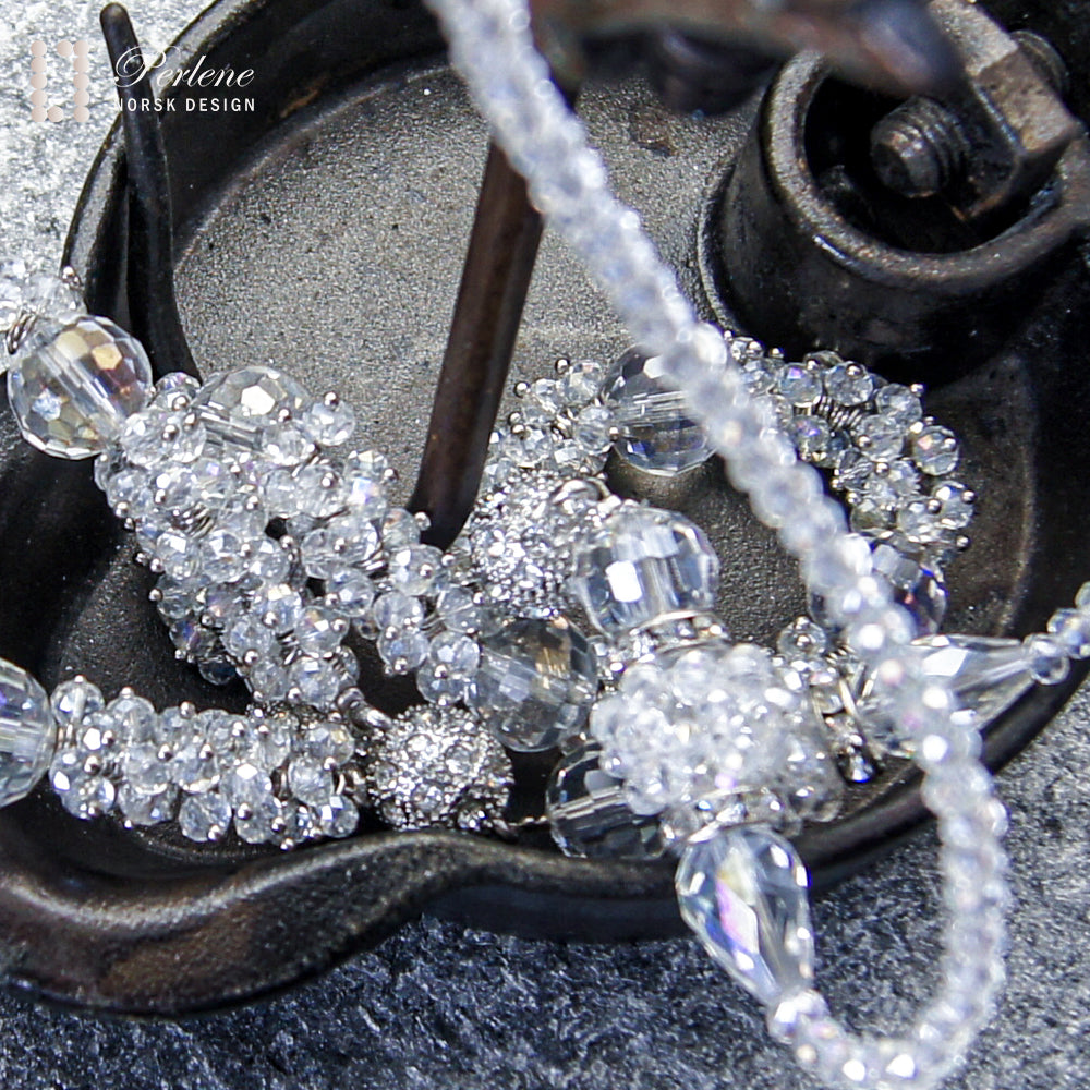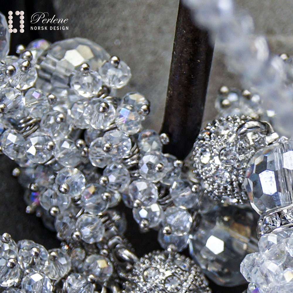 Kjede, 3 i 1, glassklar, av 2 armbånd og kjede i japanske glassperler