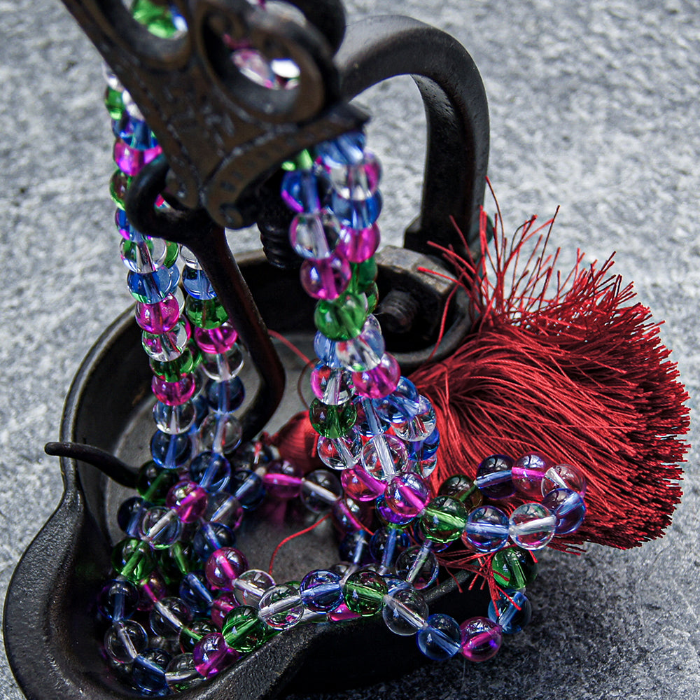 Kjede, 120 cm langt, sommer, med rosa dusk