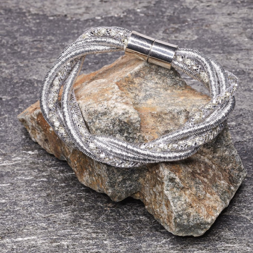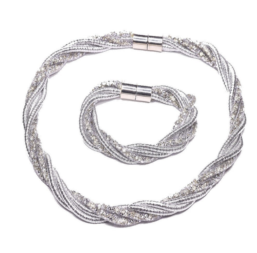 Nydelig sølvfarget kjede og armbånd. Praktisk mangnetlås gjør det enkelt å ta av og på. Kan kjøpes sammen eller hver for seg. Kjedet er 45 cm langt og armbåndet er 20 cm.